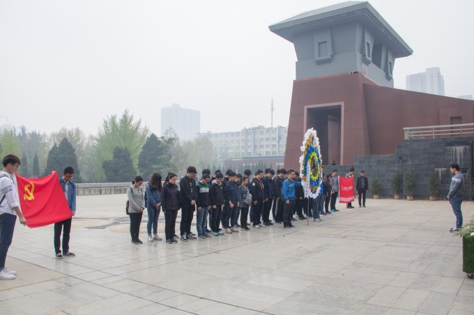 活動第一項即為祭奠革命先烈。從書寫挽聯、扎花圈等準備工作到默哀、敬獻花圈,所有老師及學生代表全程參與其中,表達了對革命先烈的尊敬、緬懷及哀悼之情。祭奠儀式中,16級學生張輝同學代表發言,號召全體同學“學習革命先烈英雄事跡,繼承中華民族優良傳統,以共產黨員的標準嚴格要求自己,爭做祖國合格接班人”。