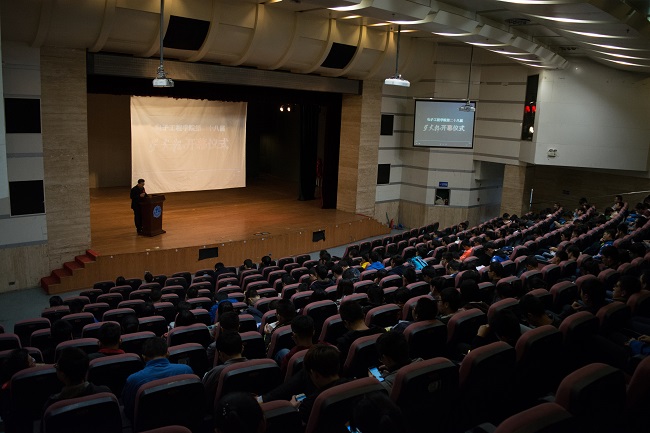 伴著舒緩的音樂、有節奏的鼓點,開幕式在一段激昂向上的街舞表演中拉開序幕。隨后,電子工程學院黨委副書記張海戰老師發表致辭。張海戰老師指出,在國家“萬眾創業、大眾創新”的大背景下,“星火杯”經過28年的發展和沉淀,對于激發同學創新熱情和培養行業骨干人才發揮重要作用,本次學院星火杯共收到744件作品,充分表現出大家參與創新創業的熱情。張海戰老師列舉楊少毅、金杰、孫其功、胡瀟菡等電院創新創業青春榜樣激勵同學,希望同學們借著第三屆中國“互聯網+”大學生創新創業大賽將在西電舉辦的東風,勇做創新創業的弄潮兒。開幕式上,“星火杯”評委李隱峰老師通過指導學生團隊參加國家級大賽的經驗,對同學們如何結合生產生活實際選題和完善作品提出了建議和意見,使同學們受益匪淺。隨后,電子工程學院創新創業青春榜樣、2013級學生胡瀟涵結合自己獲得2016年“創青春”全國大學生創業大賽和第二屆“互聯網+”大學生創新創業大賽大獎的經歷,分享了自身成長心得,激勵電院學子追求卓越。