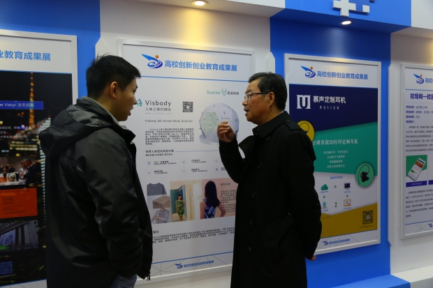 西電新聞網訊(通訊員朱文凱 朱偉 胡曉娟)10月20日,從首屆中國“互聯網+”大學生創新創業大賽總決賽上傳來喜訊,在300個入圍決賽項目爭奪30個金獎角逐中,西安電子科技大學大學生創業團隊“蒜泥科技”的Visbody人體三維掃描儀項目和“慕聲科技”的慕聲3D打印定制耳機項目雙雙獲得金獎,藝偶奇緣團隊參賽項目“偶陪你”智能幼教陪護機器人項目獲得銅獎,在隨后進行的30個金獎爭奪四強的比賽中,“蒜泥科技”團隊成功晉級,并在最后的冠軍爭奪戰中經過項目展示、專家問辯、投資洽談等激烈的比拼環節,最終獲得總決賽季軍。學校獲獎數量位列全國高校第一,獲金獎數量和獲獎成績均位列全國高校第二。