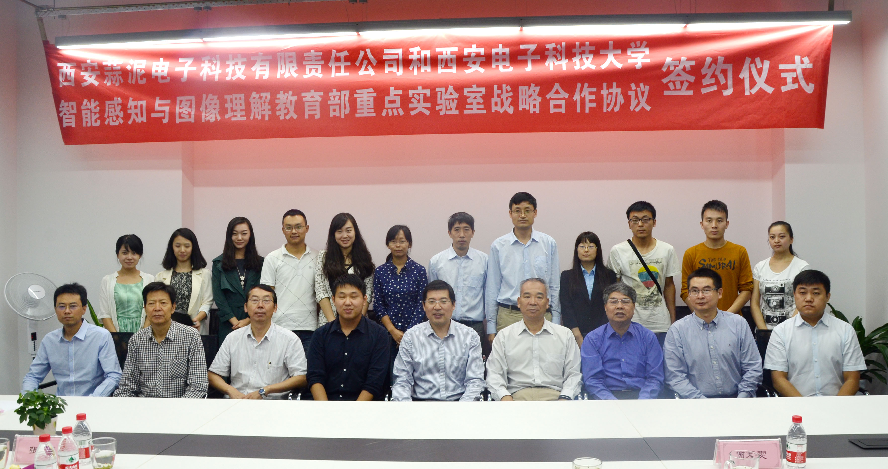 2015年9月12日,智能感知與圖像理解教育部重點實驗室與西安蒜泥電子科技有限責任公司在經開區蒜泥科技新址成功簽署戰略合作協議。西安電子科技大學校長助理高新波教授,西安電子科技大學組織部部長鄧卓峰教授,西安電子科技大學電子工程學院徐克書記,智能感知與圖像理解教育部重點實驗室主任焦李成教授,智能感知與圖像理解教育部重點實驗室副主任侯彪教授,智能科學與技術系主任鐘樺教授及高性能計算中心主任朱虎明副教授等,與經開區管委會巡視員段永和,經開區經發局生產力中心主任張亮進行了會面,一同對西安蒜泥電子科技有限責任公司進行了參觀考察,對其業務及發展情況作了詳細了解。