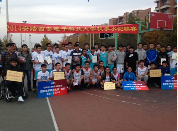 11月11日下午,由西安電子科技大學體育工作委員會主辦、校學生會承辦,安踏體育用品有限公司全程贊助的2014年西安電子科技大學秋季安踏水泥戶外籃球聯賽在南校區北操場塑膠籃球場落下帷幕。