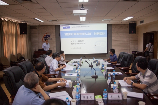 會上,專家組首先對“視覺計算與協同認知”教育部創新團隊建設方案進行了論證。在聽取團隊帶頭人高新波教授的建設規劃匯報后,專家組實地考察了科研平臺,并進行了質詢與討論。經過認真評議,專家組一致認為該團隊建設目標明確、思路清晰,人員組織結構合理,實施方案和運行機制切實可行。