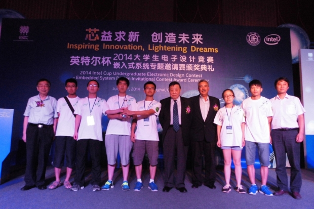 西電新聞網訊(通訊員 胡曉娟)近日,從全國大學生電子設計競賽嵌入式系統專題邀請賽組委會傳來喜訊,在 “2014年英特爾杯嵌入式系統專題邀請賽”中,西安電子科技大學應邀參賽的4支代表隊全部獲獎。其中, 由謝楷、王新懷老師任指導教師,陳國軍、郭梟鵬、仲鳴三位同學組成的參賽團隊設計的“基于視覺體感雙平衡的防暈動系統”在參賽的170件作品中脫穎而出, 奪得本次大賽的最高獎項“Intel杯”。郭梟鵬同學代表全體獲獎學生在大會上發言。