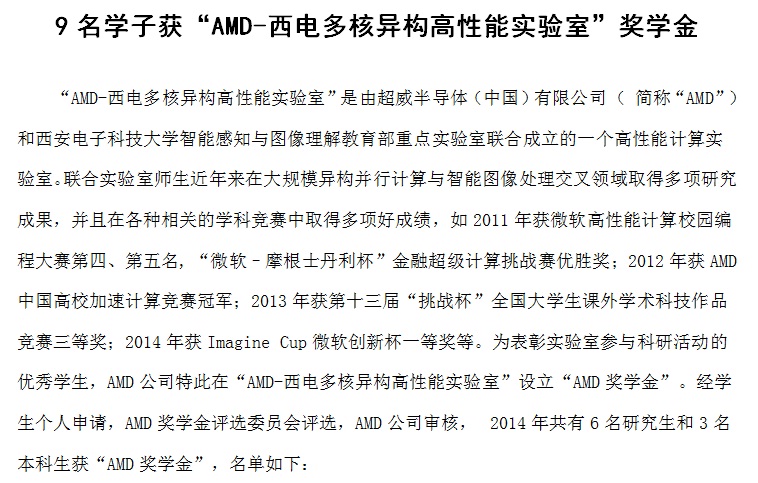 9名學子獲“AMD-西電多核異構高性能實驗室”獎學金