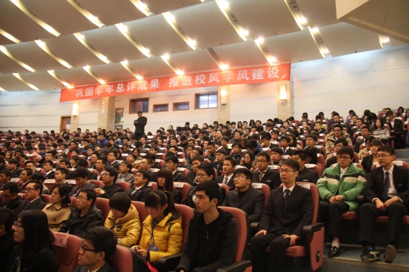 會議舉行了頒獎儀式,蔣舜浩宣讀了2012—2013學年總評授獎決定。物理與光電工程學院、通信工程學院、經濟與管理學院、計算機學院、機電工程學院以及微電子學院等6個單位獲得“學生工作先進單位”稱號,崔康等21名輔導員獲得“優秀輔導員”稱號,徐璐瑤等1094名同學獲得“優秀學生標兵”、“校級優秀學生”、“校級優秀學生干部”等先進個人稱號,011100班等94個班集體榮獲“先進班集體”、“優良學風班”稱號,共計5137名同學獲得校級獎學金。通信工程學院王思濃同學代表獲獎學生做了發言。