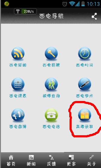 西電2013本科錄取結果陸續發布 歡迎使用西電導航查詢 2013-07-17 02:10:00 瀏覽次數: 日前,西安電子科技大學在全國各省(自治區、直轄市)的本科各批次錄取工作已經展開,為方便考生及時了解錄取情況,招生辦將陸續公布錄取結果。可以直接登錄招辦網站查詢。 為了方便考生查詢錄取結果,西電導航手機客戶端和微信 專門增加了手機查詢高考錄取結果功能。 歡迎下載西電導航手機客戶端 查詢 錄取結果。軟件下載地址http://www.xidian.cc/app 版本Ver 1.2.2 Build 2013.7.10 歡迎關注 西電導航微信 查詢錄取結果 請掃描下面的二維碼 上一篇文章:電子工程學院召開黨的群眾路線教育實踐活動動員會 下一篇文章:2013年暑假班車/水電/教室/餐廳等運行時間安排