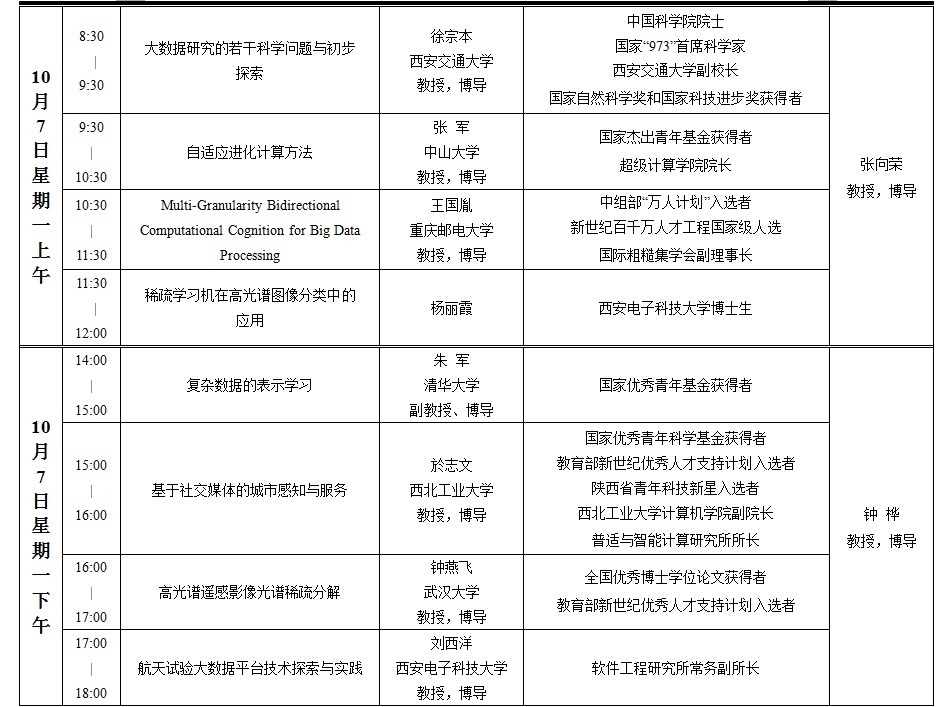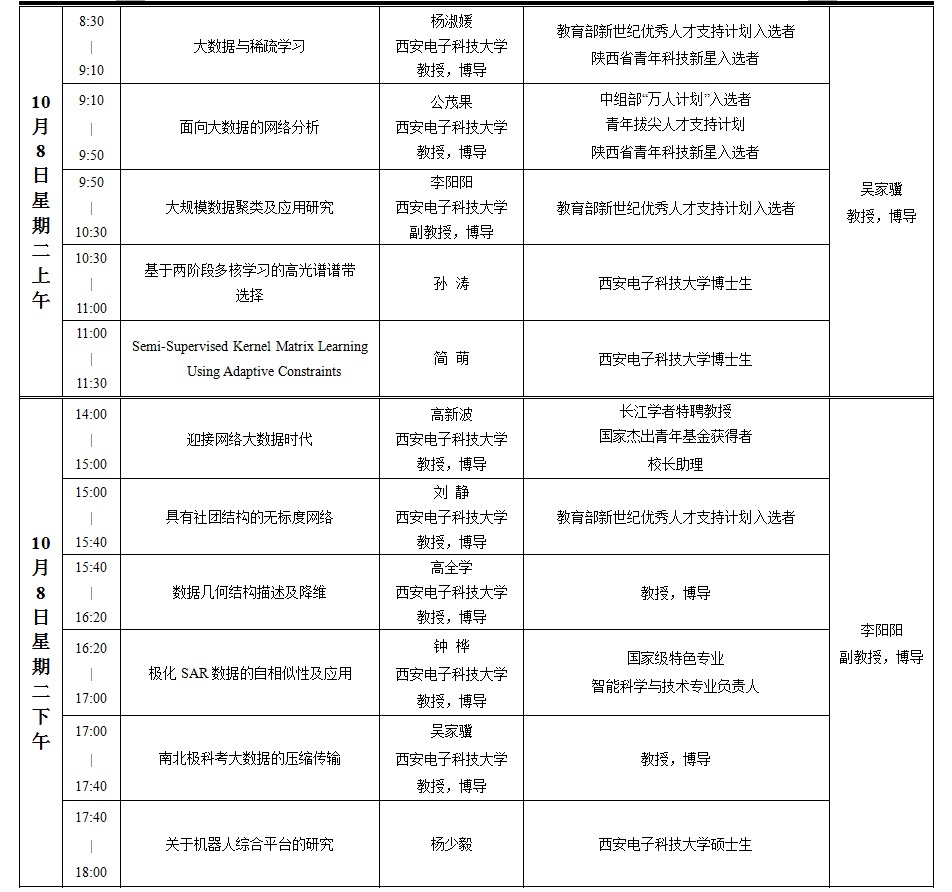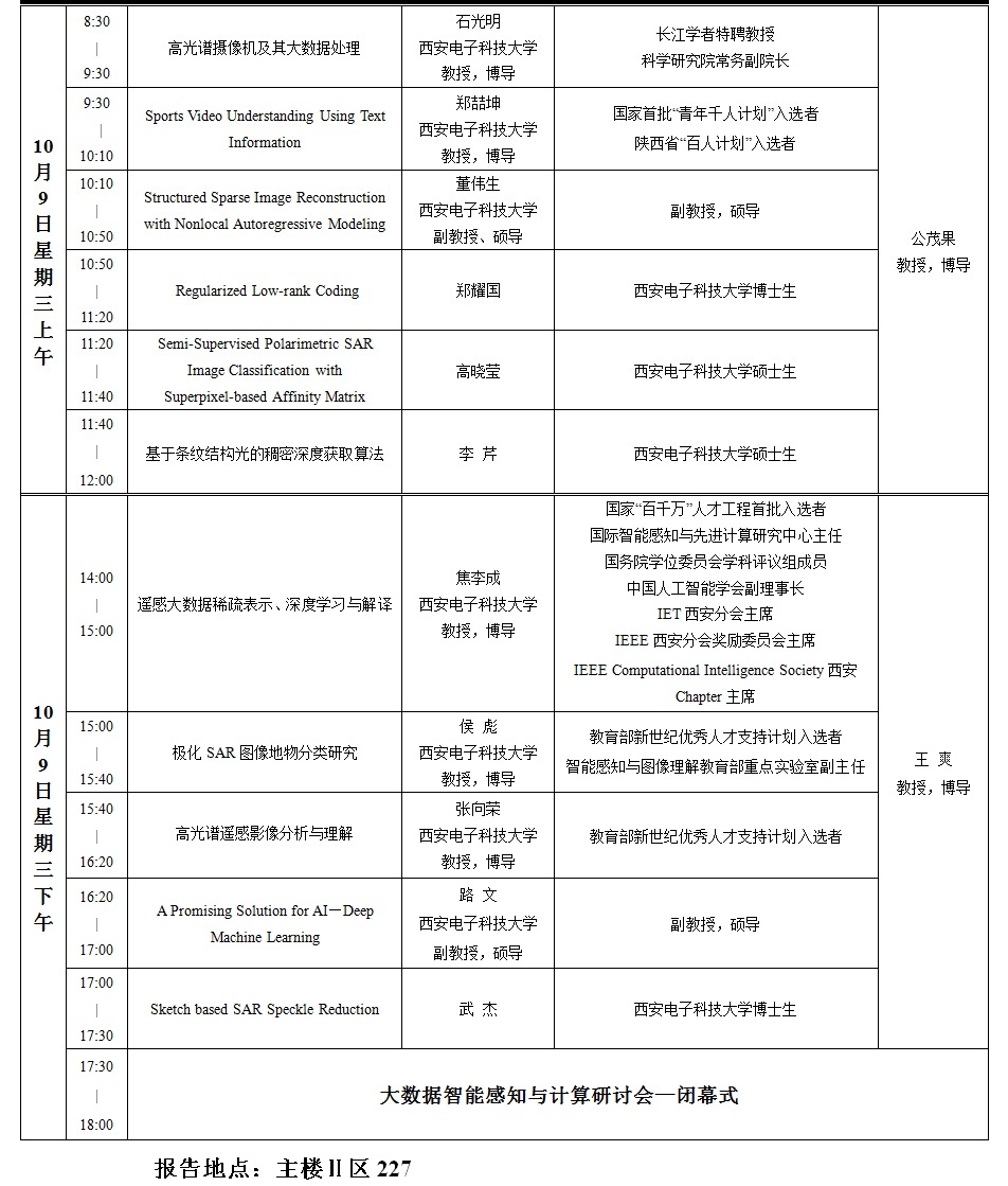 大數據智能感知與計算研討會日程詳細安排(最終)