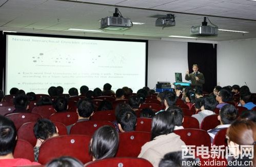 3月14日上午,Paisley博士在北校區新科技樓1602會議室做了題為“Bayesian Nonparametric Topic Models and ‘Big Data’ (貝葉斯非參數主題模型與大規模數據處理)”的學術報告。報告以文本處理作為切入點,詳細介紹了不同復雜度和功能的貝葉斯非參數分層話題模型,其中有Dirichlet過程、分層Dirichlet過程,嵌套中國餐館過程和嵌套分層Dirichlet過程等。