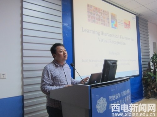 24日上午,在北校區主樓II-227報告廳薄列峰高級研究員做了題為“Learning Hierarchical Features for Visual Recognition”的學術報告。他簡要介紹實驗室概況及研究課題后,又細致深入的講解Deep Learning在Visual Recognition中的應用,最后通過豐富的實例演示讓大家了解該研究課題在實踐中的應用。報告會由智能感知與圖像理解教育部重點實驗室公茂果教授主持。