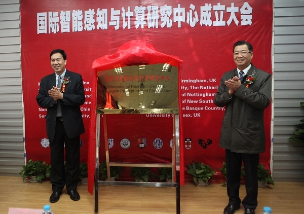 隨后,張書玲和龍建成共同為“國際智能感知與計算研究中心”成立揭牌。
