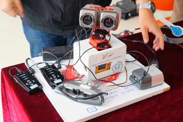 一位大一選手向我們展示了自己的“處女作”。有一個優秀作品的作者是一位大一新生,他的作品主要功能是“用大腦控制攝像頭”。當被問及答辯時有什么感受時,他說“剛開始時還是有點緊張的,但到了后來和老師說著說著就放松下來了”,并且還表示將通過老師的指點,向更深層次進行研究。我們期待著他能做出更優秀的作品。而積累了相對足夠理論知識的大三大四甚至研究生選手,他們展示的作品更是精彩。一位大三選手給我們展示了他設計的播放器:“給予它音頻信號后,信號燈會將頻譜峰值顯示出來,再經過變壓、功放等一系列處理步驟,聲音會從喇叭中傳出來。”