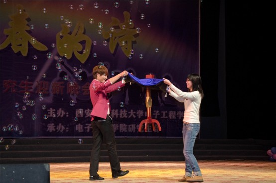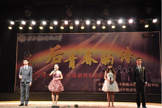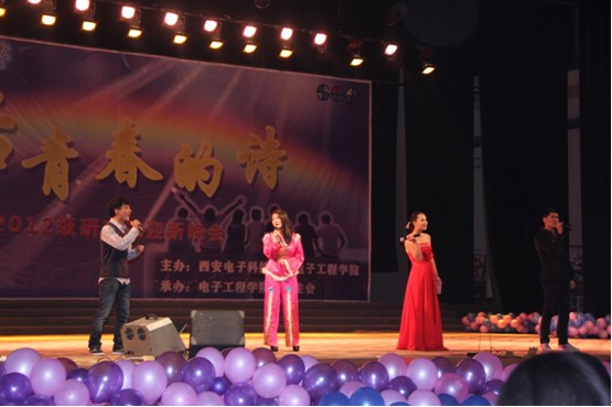 2012年11月8日晚,伴隨著中共十八大的召開,電子工程學院研究生2012級迎新晚會在校大禮堂隆重舉行。此次晚會以“后青春的詩”為主題,承載著電子工程學院對全體研究生新同學的祝福和期盼,承載著全體研究生新同學攜手共進、逐夢西電的豪情和壯志。