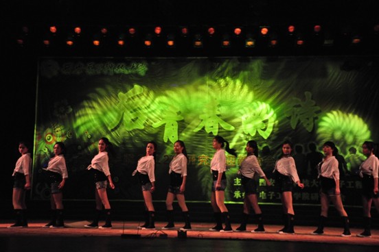整場晚會表演內容豐富,形式多樣新穎,樂隊表演、歌曲獨唱及串燒、小品相聲、話劇魔術、沙畫以及各類舞蹈競相演繹。以熱力四射的樂隊搖滾歌曲為晚會拉開了帷幕,同時激起了在場所有觀眾的熱情與共鳴。接著是四段精心制作的視頻,分別是石光明、劉宏偉、龔書喜和尹應增四位老師對新生寄予的祝福和期望。接下來是話劇表演《爆笑招聘會》,經典影視臺詞的靈活應用,以及演員們活靈活現出彩的表演將晚會一次次推向高潮。教職工帶來的精彩舞蹈《荷塘月色》也讓我們看到了西電教職工的風采。隨后的歌曲串燒、魔術和名謠組合輪番上演,令臺下的觀眾看得津津有味,掌聲和歡呼聲一浪接著一浪。其中魔術表演者的高超技藝更是讓大家嘆為觀止、拍手叫絕,現場氣氛十分熱烈。Bbox街舞動感的音樂,絢麗的舞步,把年輕、自由、無拘無束演繹得淋漓盡致,讓臺下觀眾都躍躍欲試。而緊接著的舞蹈《醉江南》,則以曼妙的舞姿盡顯江南女子的甜美婉約,將觀眾的思緒帶入如夢如幻的江南煙雨。相聲《屌絲青年》的演員們詼諧風趣,可謂包袱不斷,妙語連珠;表演現代舞《Beautiful Girl》的女孩兒們熱力四射,激情動感,瞬間hold住了全場,將觀眾的熱情快速點燃;民歌《映山紅》也讓大家一飽耳福;詩朗誦《后青春的詩》深情唯美,獨屬青春歲月的淡淡憂傷,感染了在場的每一位觀眾;沙畫表演者用手中靈動的沙子描繪了西電的發展史,不時引來觀眾們的陣陣歡呼,現場報以熱烈的掌聲。最后,晚會在“唱響西電”四強的合唱《另一個天堂》中圓滿落幕。