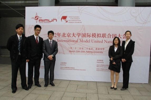 西電新聞網訊 3月22日至25日,由北京大學、中國聯合國協會、聯合國世界糧食計劃署聯合主辦的2012亞洲模擬聯合國大會AIMUN(Asia International Model United Nations)在北京大學舉行。經過積極申請,我校得到了歷史安理會的馬來西亞以及聯合國大會的尼泊爾兩個國家,共四個參會代表名額(通信工程學院王乾丞、通信工程學院李琢乾、通信工程學院李曉揚及技術物理學院姜思宇)與一個極其珍貴的主新聞媒體中心(MPC)的代表名額(電子工程學院2011級季超亞)。