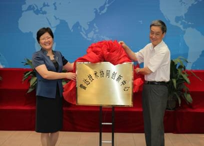 中國電子科技集團公司總經理熊群力和西安電子科技大學校長鄭曉靜共同為中心揭牌