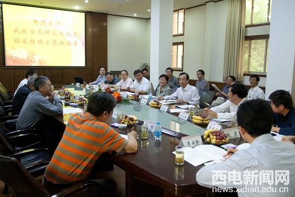 座談會上,副校長郝躍重點介紹了學校發展建設情況。孫家棟院士充分肯定了西電為航空航天主戰場所做的重要貢獻,并表示會一如既往地繼續大力支持學校空天研究院的發展。他從空間安全、軌道設計、信息有效提取、信息的地面應用、下一步深空探測技術的發展等方面介紹了空間技術的發展動態,為廣大教師從事科研工作提供指導和幫助。他強調,西電教師基礎研究功底扎實,成果豐碩,如何進一步將這些成果同工程相結合,發揮最大的效益,這是需要大家共同思考的問題。