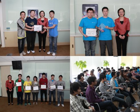 2012.4.17-2012.4.17:20支隊伍進行緊張而激烈的決賽環節,挑戰評委們的各種提問。賽后,聆聽了關于“明日之星”實習生計劃的講座,并向微軟亞洲研究院的員工們進行了實地的DEMO展示。