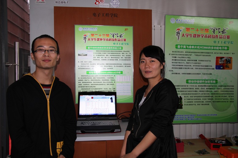 龍書記 參觀電子工程學院展臺,觀看 《西電導航網xidian.cc》和《校慶接待系統》作品展示