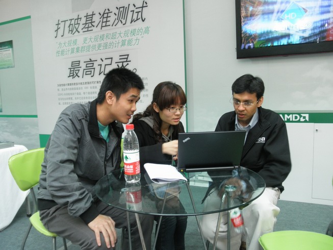 10月29日,第四屆“AMD中國加速計算應用競賽”評選結果揭曉。來自西電的journey團隊——曹宇、惠轉妮與來自清華大學、上海交通大學、中科院軟件所的其他三支隊伍在臺下緊張地等待著。當主持人宣布“亞軍,來自西安電子科技大學的Journey團隊”時,曹宇和惠轉妮長舒了一口氣。他們知道,實驗室里廢寢忘食的日日夜夜沒有白費,無數次的討論、修改沒有白費。他們沒有辜負西電對他們的期望。