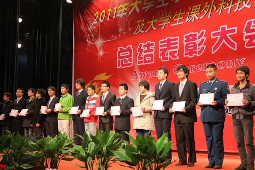 2011年,我校學生參加省級以上學科競賽及大學生課外科技實踐創新活動20余項,成績顯著,共獲得省級以上獎項146項。其中:國際一等獎4項、國際二等獎5項;國家特等獎2項、國家一等獎23項、國家二等獎16項、國家三等獎9項、國家“優秀指導教師”獎1項、國家“優秀征題獎”1項;省級特等獎3項、省級一等獎37項、省級二等獎26項、省級三等獎16項、省級以上“優秀組織獎”3項。