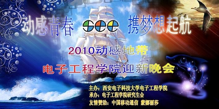 為了歡迎2010級新生的到來,電子工程學院將于2010年11月19日晚7點在校大禮堂舉辦“動感青春,攜夢想起航”迎新晚會,希望同學們屆時光臨并欣賞這場盛宴。