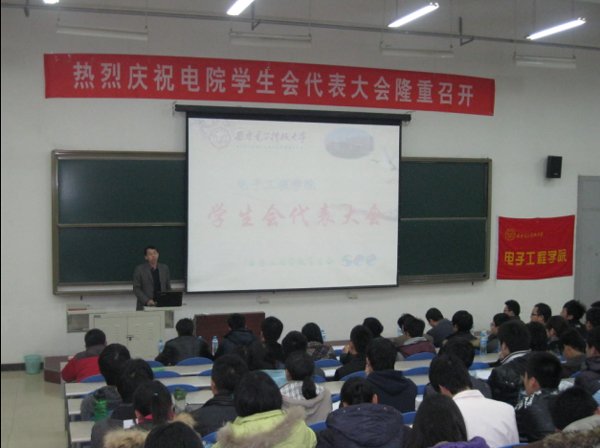 電院新聞中心訊 (通訊員 王雪霽)2010年12月13日下午4:20,電子工程學院學生會代表大會正式召開。出席此次會議的有電院黨委書記鄧卓峰、黨委副書記徐克、各年級輔導員、校學生會代表央國華副主席、各兄弟院系學生會代表以及我院科協、團委代表。
