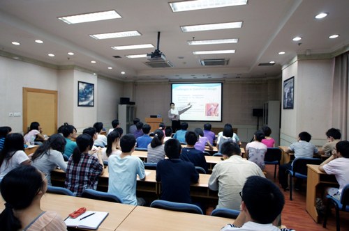 16日上午,吳大鵬博士與影像處理系統實驗室的師生就無線通信網絡和多媒體處理技術等研究課題進行了深入的交流。16日下午,吳大鵬博士在圖書館A108報告廳為我校師生做了題為“Ripplet: a New Transform for Feature Extraction and Image Representation”的學術報告。他介紹了其研究小組提出的一種新的圖像特征提取和表征的變換方法。吳大鵬博士還介紹了他團隊的科研項目情況,并且逐一解答了教師和同學們感興趣的問題,報告會氣氛熱烈。