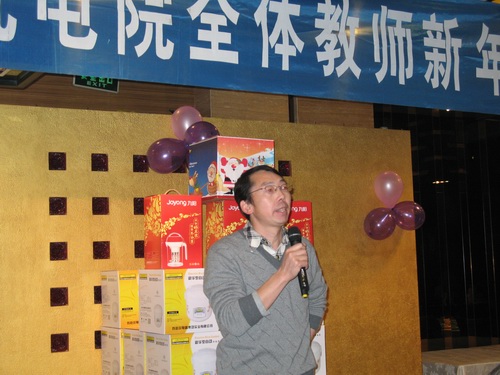 焦院長回顧了電院2009年取得的主要工作成績:學院獲得教育部先進集體稱號,新增百優博士論文一篇,提名一篇,三大索引論文數即將突破千篇,新批準兩個教育部重點實驗室,引進17名博士留校任教,全院在職教師博士學位人員超過60%等等一系列成果。同時勉勵全院教職工要再接再厲,在2010年取得更大成績。