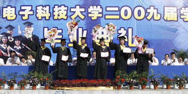 會上,校黨委副書記龍建成宣讀了《陜西省教育廳關于表彰2009屆高等學校優秀畢業生和優秀學生干部的通知》、《關于授予岳浩等46名同學2009屆“優秀畢業生標兵”稱號的決定》、《關于授予劉春等155名同學2009屆“優秀畢業生”稱號的決定》、《關于授予程先柱等52名同學2009屆“優秀學生干部”稱號的決定》和《關于表彰獎勵2009屆薛斌等18名畢業生的決定》。隨后,副校長陳平宣布了西安電子科技大學授予2009屆4781名本科生,79名博士研究生,104名碩士研究生學位的決定。