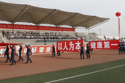 我校第三十一屆大學生田徑運動會暨第二屆趣味運動會于4月25日上午在南校區體育場隆重開幕。參加開幕式的主要領導和來賓有我校黨委和行政領導以及我校各院部領導和著名中學的校長,西安各兄弟院校體育部門相關領導。