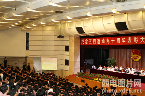 5月4日下午16點30分,紀念五四運動九十周年表彰大會在大學生活動中心小劇場隆重舉行。校黨委書記陳治亞、校長段寶巖、黨委副書記龍建成、副校長郝躍、陳平、楊銀堂以及各相關職能部門、各學院領導、受表彰的先進集體和學生代表共500余人參加了表彰大會。