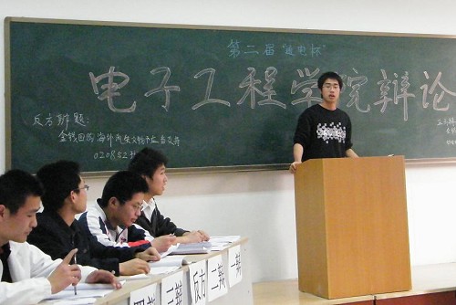 作為電子工程學院團委“人文躍升計劃”的一部分,辯論賽不僅能夠提高參與者的邏輯思維能力和口頭表達能力,同時,對廣大同學拓展視野,關注時事,表達觀點提供了一個良好的平臺,對我校學生拓展國際化視野,開展研究式學習有非常大的幫助。而電子工程學院新生辯論賽自2005年開始啟動,歷屆的比賽都十分精彩,在廣大同學中反響很大。從2008年開始,電子工程學院團委與通信工程學院團委精誠合作,共同舉辦“通電杯”新生辯論賽,一方面豐富了廣大同學的課余文化生活,同時也在一定程度上促進了兩個學院同學之間的交流,收到了良好的效果。(完)
