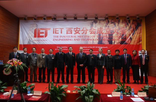 IET西安分會成立大會于2008年10月31日在西安電子科技大學隆重舉行。段寶巖校長和IET主席——英國皇家工程院院士Chris Earnshaw先生出席并致辭,國際合作與交流處處長高新波教授、IET北京代表處總監趙文利先生、IET北京分會主席周孟奇教授和司庫唐曉芳教授、IET上海分會主席陳惠民教授和副主席萬旺根教授、IET英國總部及北京代表處的工作人員、西安分會執委會的各位委員共同參加了本次成立大會。