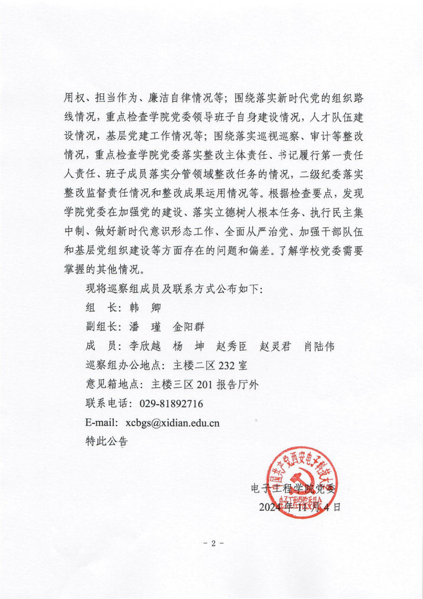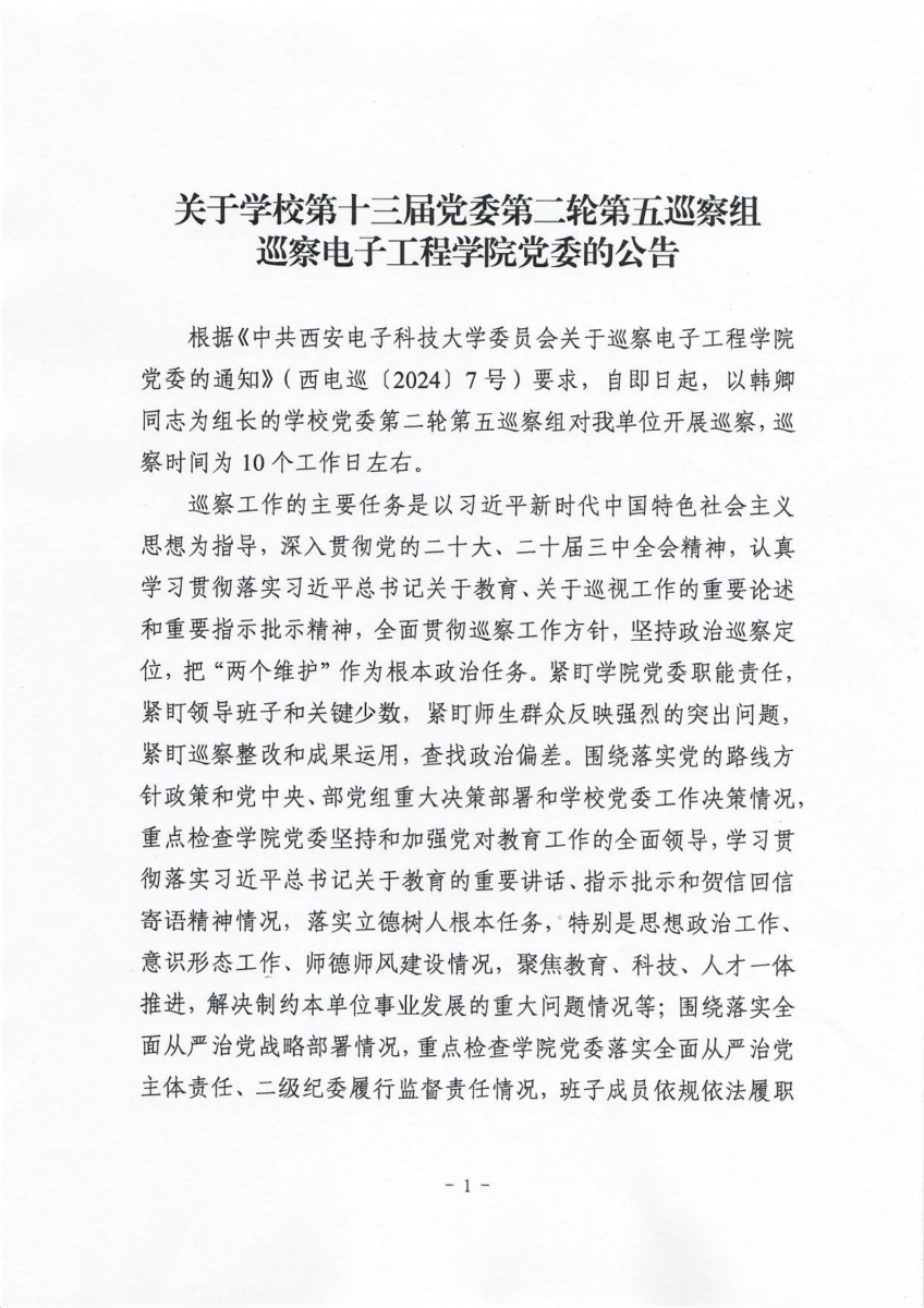 關于學校第十三屆黨委第二輪第五巡察組巡察電子工程學院黨委的公告 2024-11-05 09:04:00 瀏覽次數: 責任編輯:王潔 上一篇文章:關于申報“Cadence電磁場和高速電路學術論文獎”的通知 下一篇文章:電子工程學院2024年國慶節假期值班安排