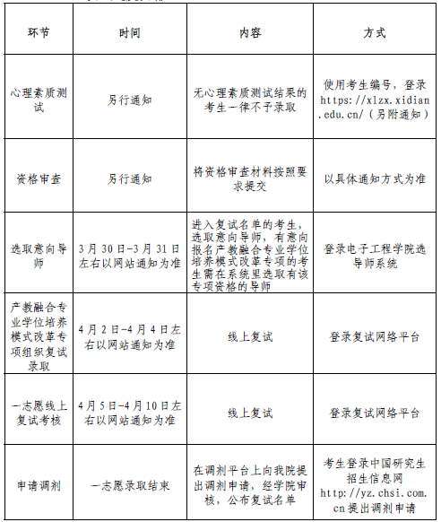 全日制電子信息(085400)專業的考生作為該專項第一批次組織復試。全日制學術學位考生作為該專項第二批次組織調劑復試。如前一批次錄取情況滿足招生計劃指標則錄取結束。