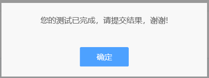 點擊進入后點“開始測試”按鈕開始測試,全部題目做答完畢后,點“確定”按鈕即可。
