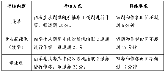 基礎知識考核內容包括:英語、專業基礎課(數學)、專業課三部分,考核范圍為2020年學院博士招生簡章復試筆試內容。該項考核總分100分,成績達到50分及以上視為基礎知識考核環節合格,考核合格考生方有資格進入后續綜合面試。