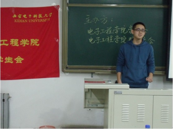 在掌聲歡迎之后,先由工作過一年后重返校園的06級焦龍飛學長暢談經驗,學長首先介紹了西電的各類競賽,接著鼓勵同學們積極加入學生會以及社團,以鍛煉自己的社交能力和團隊協作能力,學長還談到畢業后工作地點的選擇問題,無論是北上廣還是二三線城市,都各有利弊。最后學長告訴學弟學妹們,一定要發現自己的興趣所在,走適合自己的路。他再次強調塑造人格魅力,EQ至關重要。