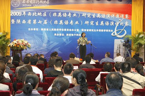 E流網訊由陜西省人民政府學位委員會辦公室、陜西省研究生外語教學研究會主辦,西安電子科技大學承辦的2009年西北地區(非英語專業)研究生英語演講邀請賽暨陜西省第七屆(非英語專業)研究生英語演講比賽于4月17-19日在我校北校區科技樓一層學術報告廳隆重舉行,來自陜西、甘肅、寧夏、新疆、青海、內蒙六省(區)55個研究生培養單位的56名研究生選手參加比賽。本次比賽的主題是“科學發展觀與和諧社會”,比賽首次邀請西北地區普通高等院校參賽,并且是歷年來參賽單位和參賽選手最多的一次大型研究生英語演講比賽。