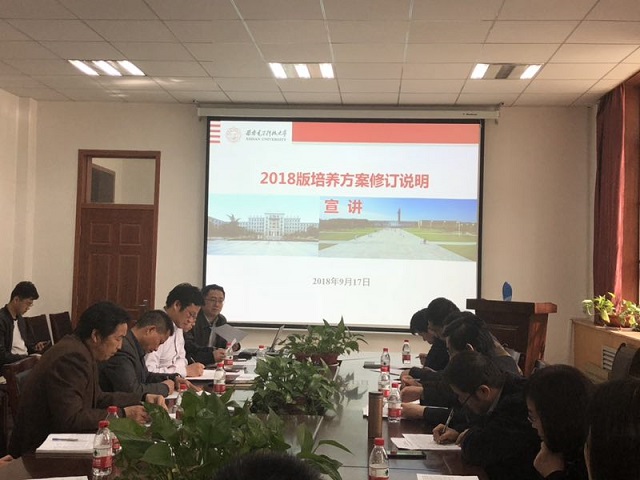 蘇濤向參會人員就年度指標任務制定過程進行了解釋說明,并從為什么改、怎么改、改成什么樣等幾個角度出發,就學校2018版本科培養方案修訂工作進行了解讀。