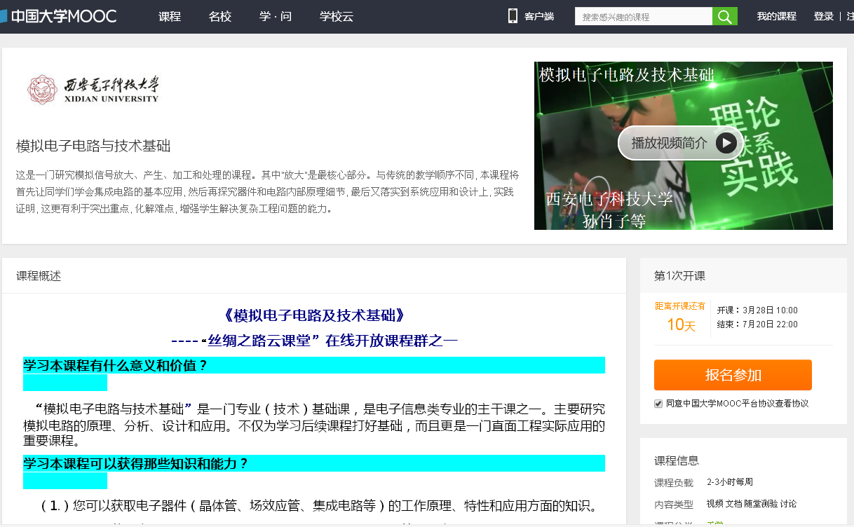 電子工程學院又一門“中國大學MOOC”課程——“模擬電子電路與技術基礎”發布了,請全院相關同學積極報名注冊,參加學習