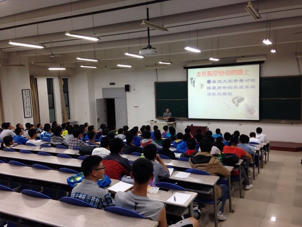 2014航模社見面會和第一次講座成功舉辦 2014-09-27 12:23:00 瀏覽次數: 2014年9月23日晚7:30,航空協會如約在B座442教室舉辦了2014級新成員見面會及第一次技術講座,在主席簡要介紹了航空協會的發展概況后,介紹了有關航模的各種基礎知識,臺下的同學無不全神貫注地聽講,全程無睡點。 講座結束后,仍有不少同學留下前來咨詢有關第一次接觸航模的準備工作,我們仔細地為同學們解答并帶領大家體驗了飛行模擬器。 接下來的兩周,我們還會有關于多軸飛行器和固定翼航模及無人機方面的專業講座,歡迎大家準時關注航空協會新動態!航空協會14年官方群:316139005 上一篇文章:#26屆星火杯#網上報名全攻略 下一篇文章:西安電子科技大學關于申報2014年新實驗開發與新實驗設備研制及實驗教學改革立項的通知