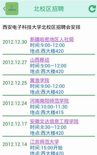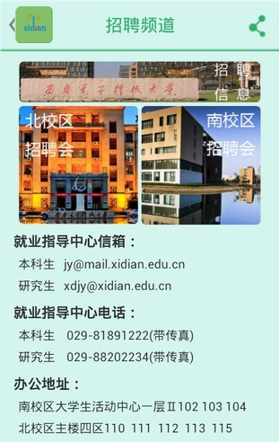招聘服務提供了南北校區的招聘會安排以及各種招聘信息與就業信息網同步