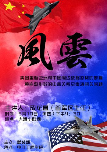 講座上,成主任給我們著重分析了二戰后世界格局的變化以及美國近年來的戰略調整,即“戰略重心東移”。在美國以反恐的名義發動了阿富汗戰爭之后的十年里,由于美國深陷戰爭泥潭難以自拔無暇顧及中國,致使我們獲得了良好的發展黃金期。但自2010年美國從伊拉克撤軍后,美國不斷在對外貿易、人民幣匯率、對臺軍售和南海主權問題上刁難中國。特別是在南海問題,美國給菲律賓等東南亞小國撐腰,使“菲傭”不知天高地厚,拼命玩火,企圖將南海問題國際化!這給我們敲響了思想上的警鐘,讓我們深刻的認識到當今國家安全局勢不容樂觀!