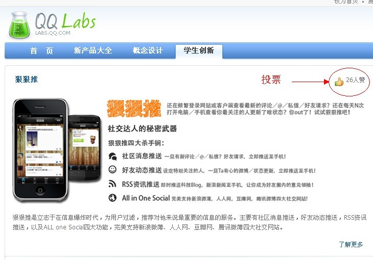 投票支持 http://labs.qq.com/innovation.php 在右上角 點個 贊!!!