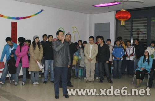 值此新年來臨之際,作為08級新生在大學校園度過的第一個新年,學校領導非常關心。校黨委副書記龍建成、副校長陳平和相關職能部門領導以及各學院、新生部領導共同來到G樓聯歡現場,和同學們互相祝福,共度新年。