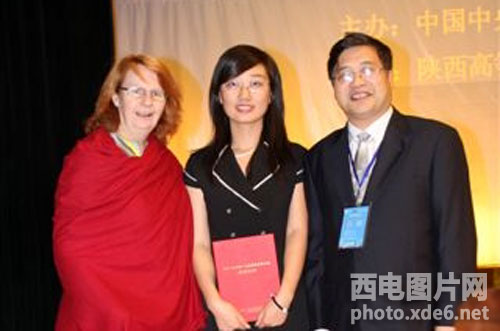 吳波瀾與指導教師Deborah和陜西省高等學校大學外語教學研究會會長、人文學院領導楊躍教授