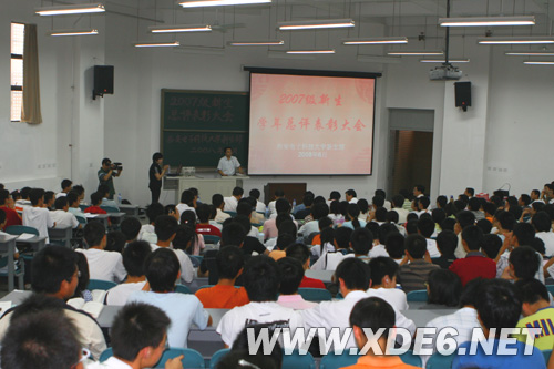 6月19日下午,2007級新生學年總結暨表彰大會在新校區D-211教室隆重召開。此次大會共表彰先進班集體、優良學風班各10個,學習標兵宿舍、文明宿舍共200個,獲各種榮譽稱號學生1342名。校黨委副書記龍建成教授出席會議并講話。 新生部主任梁瑋做了2007年新生部工作報告。報告簡要回顧了新生部在學風建設、心理健康、習慣養成等各項工作中所取得的成績。學生工作處副處長徐克代表學校宣讀了獎學金、先進班集體、優良學風班和學習標兵宿舍的獎勵決定,新生部副主任陳武宣讀了新生榮譽稱號、文明宿舍和新生活動先進個人的表彰決定。