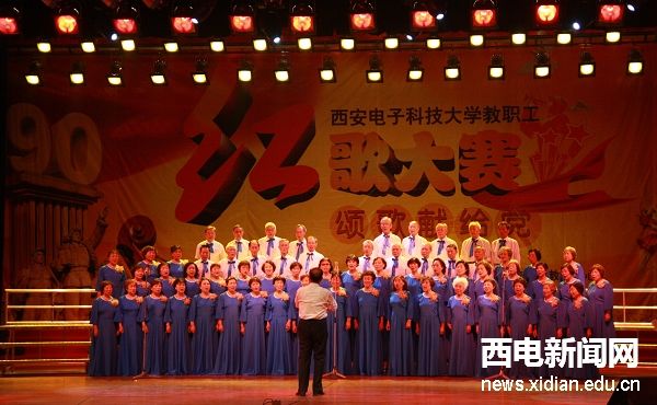 西電新聞網訊(記者 吳華 學生記者 佘麗丹) “九十年歷經滄桑,風云激蕩。九十年英雄輩出,譜寫華章。今天,我們敞開心扉,唱響紅色經典。今天,我們歌唱偉大的祖國,頌歌獻給偉大的黨……”
