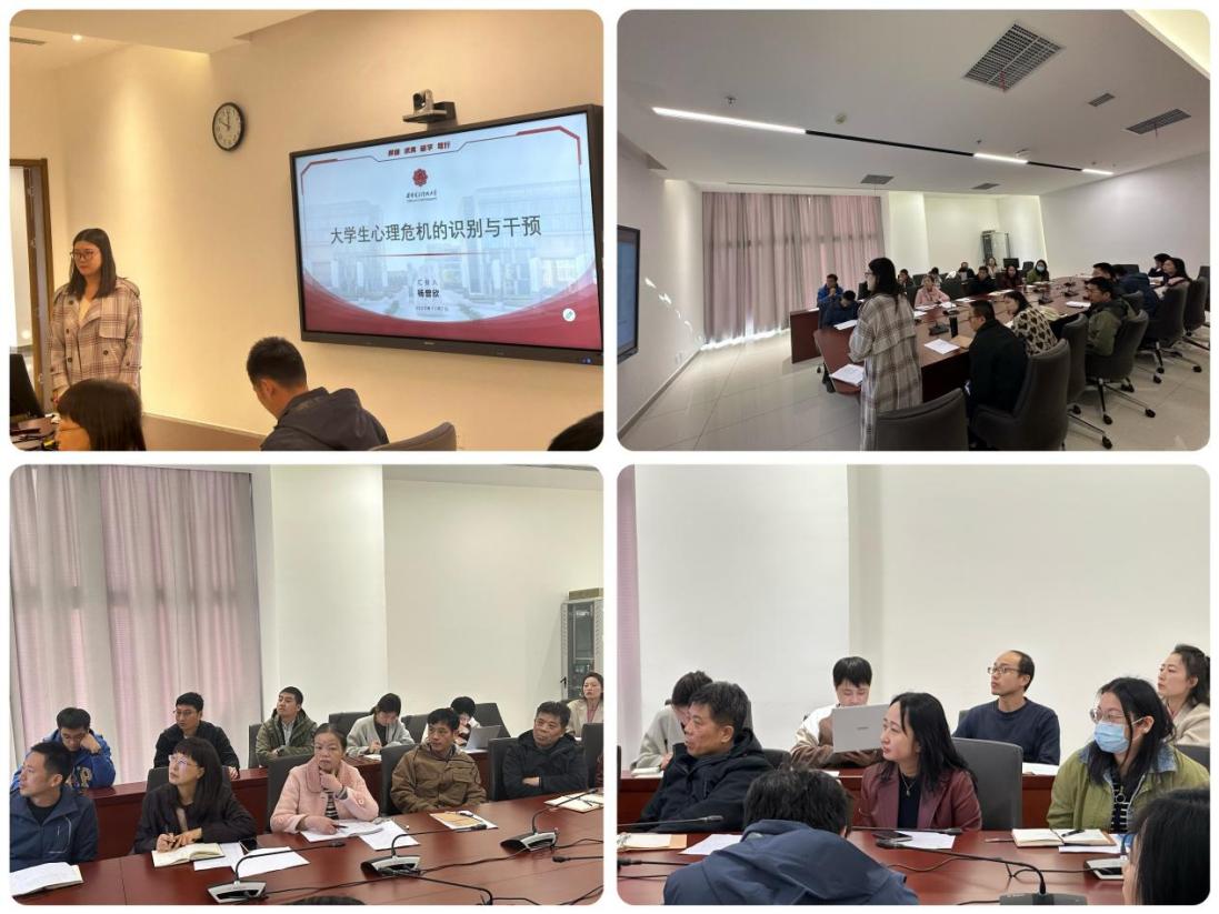 為進一步加強輔導員隊伍建設,切實提升學院心理健康教育工作的針對性與實效性,11月7日,電子工程學院組織的“輔導員心理健康教育工作專題培訓”在南校區會議中心113會議室舉行,外國語學院、數學與統計學院應邀參加。 電子工程學院輔導員楊曾欣以“大學生心理危機的識別與干預”為主題分享經驗。電子工程學院黨委副書記賀振航、外國語學院黨委副書記鄭曉梅以及學院輔導員參加培訓。